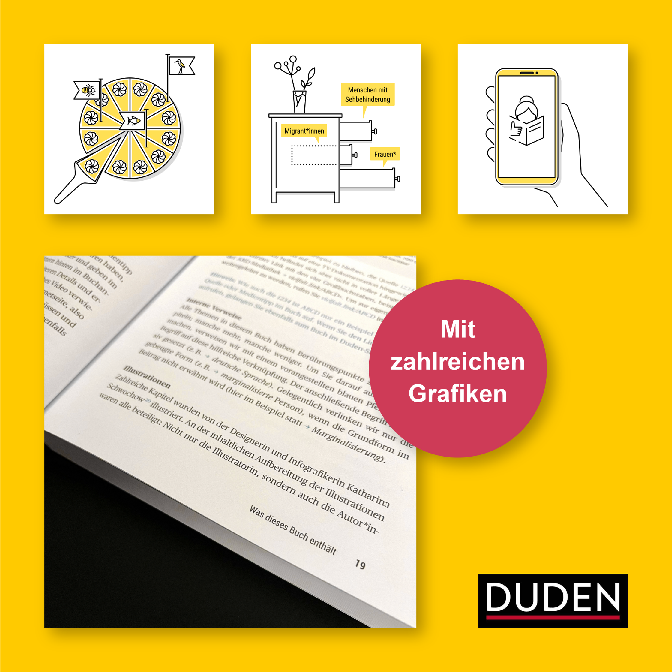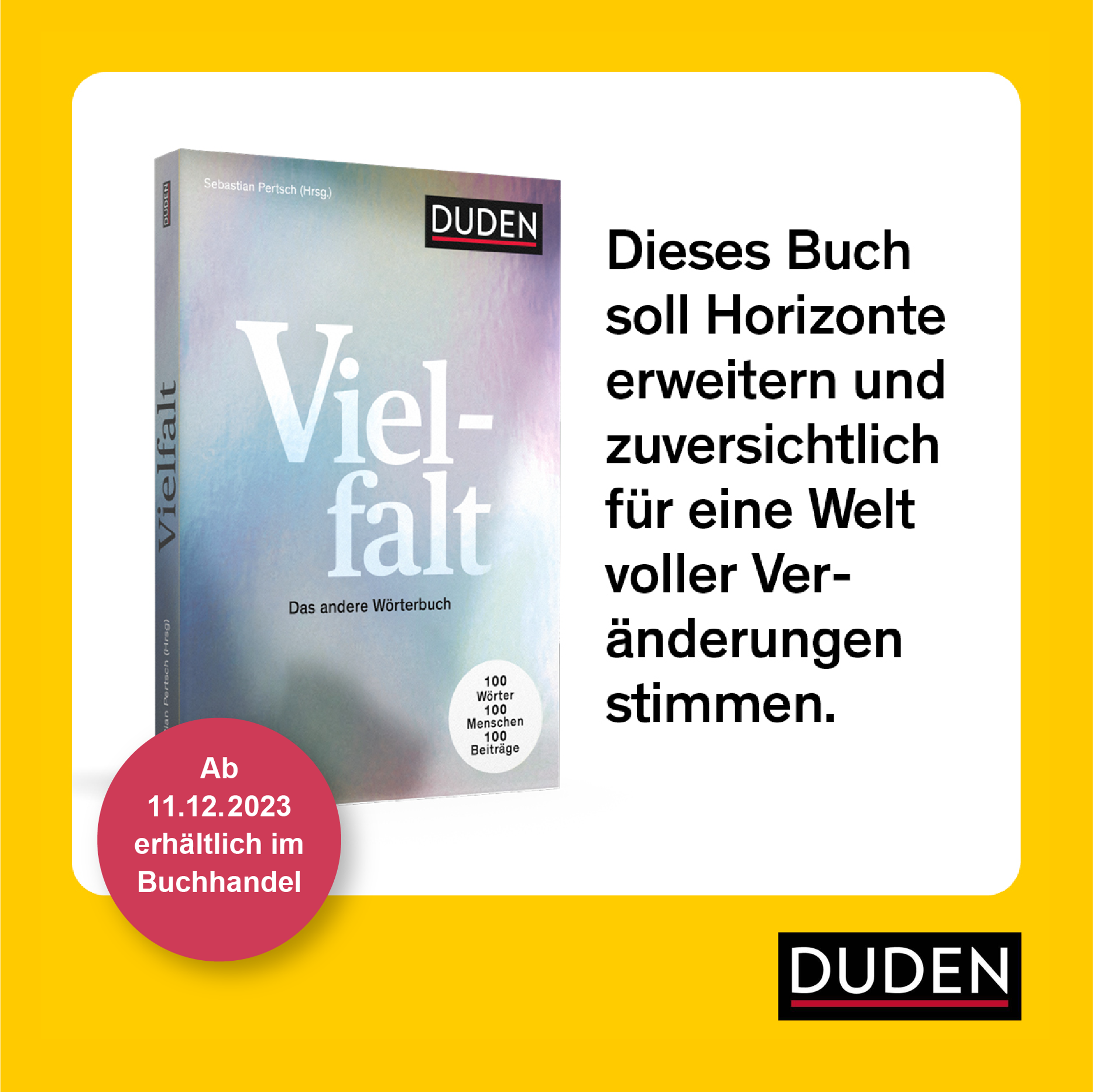 "Vielfalt. Das andere Wörterbuch" Duden Verlag, Sebastian Pertsch (Herausgeber), Katharina Schwochow (Grafiken), Veronika Neubauer (Buchgestaltung/Satz, Layout) und Dr. Kathrin Kunkel-Razum (Redaktionelle Leitung)